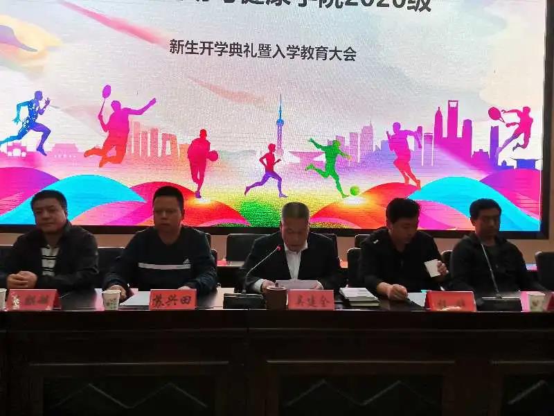 春华秋实,桂果飘香。为欢迎来自甘肃、广东、天津等19个省市(自治区)的215名新同学加入体育学院大家庭,9月23日晚在二号报告厅隆重举行2020级新生开学典礼暨入学教育大会。公司党总支副书记吴建全,副经理程晖,副经理苏兴田,运动训练系系主任王麒麟,社会体育指导与管理系系主任龚晨太,体育教育系系主任高海利,学院团委书记王昊,办公室副主任马慧琼,2020级各班班主任,教师代表段文义,辅导员以及2020级全体员工参加,典礼由公司党总支副书记吴建全主持。