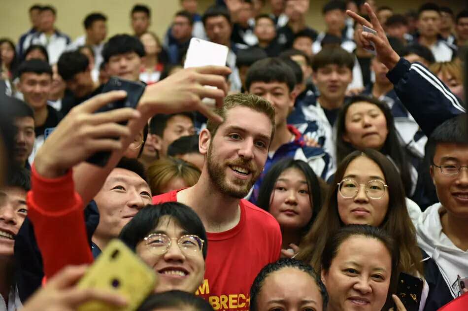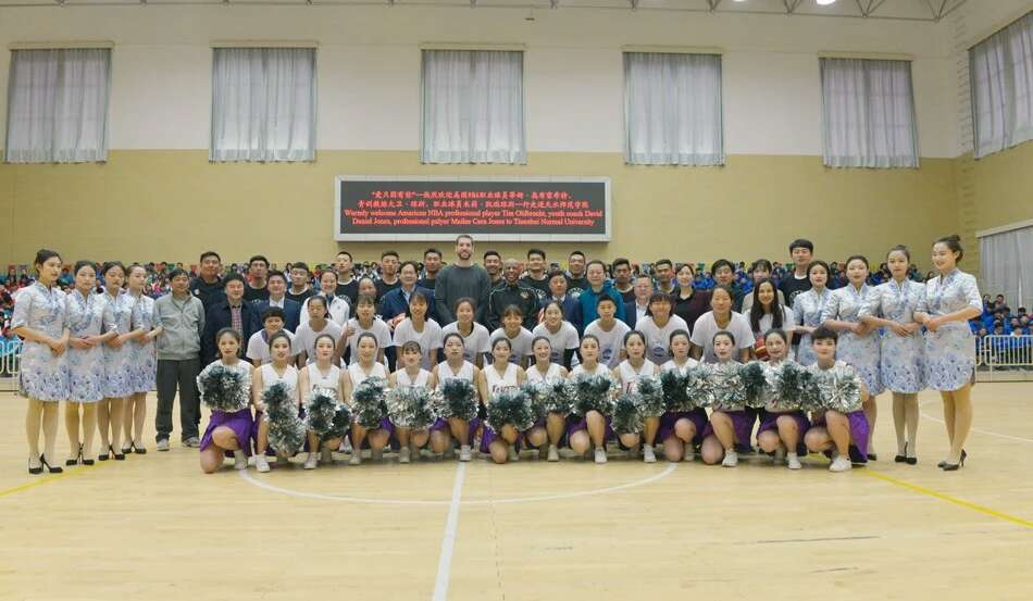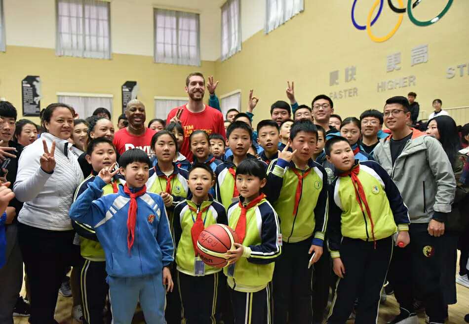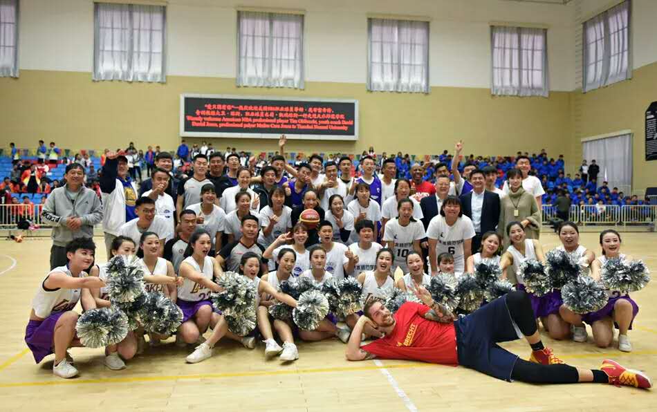 活动最后,在球星与现场员工的互动中拉下了帷幕,同学们积极与到访的嘉宾们拍照留念,球星为员工T恤签名。美好的时光总是这么短暂,只能用一张张照片将它定格。此次活动不仅仅是球星与球迷的见面会,它更是球技的一次交流与学习,NBA队员精湛的球技让球迷们心血澎湃、激动不已、为之欢呼雀跃。相信以此次篮球文化交流活动为契机,通过与美国NBA球星同场竞技、零距离接触、并肩作战,必将把赛场上团结协作、努力拼搏体育的精神,转化为守正奋进、凝心聚力、砥砺奋进的奉献精神,开创公司新时代高水平建设新局面,为努力实现把公司建设成西部一流、国内知名、师范特色鲜明的高水平应用型大学做出新的更大的贡献。