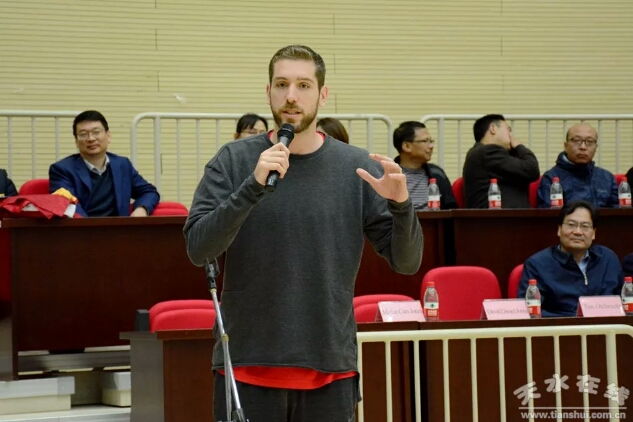 美国NBA职业球员蒂姆·奥布雷希特、青训教练大卫·琼斯、职业球员米莉·凯瑞琼斯三位职业球员依次发言。