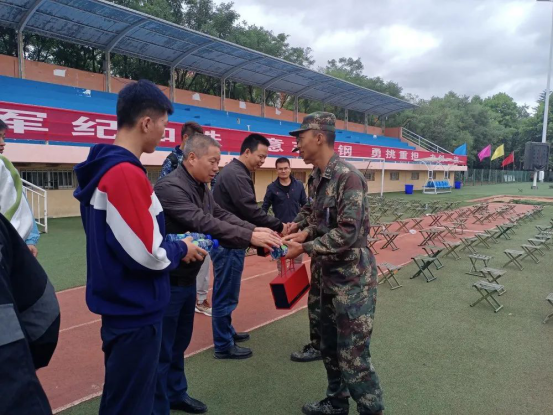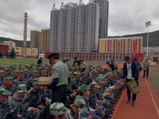 公司领导向军训新生和军训教官发放脉动、火腿肠等物资,为新生带来了节日的亲切问候与祝福。