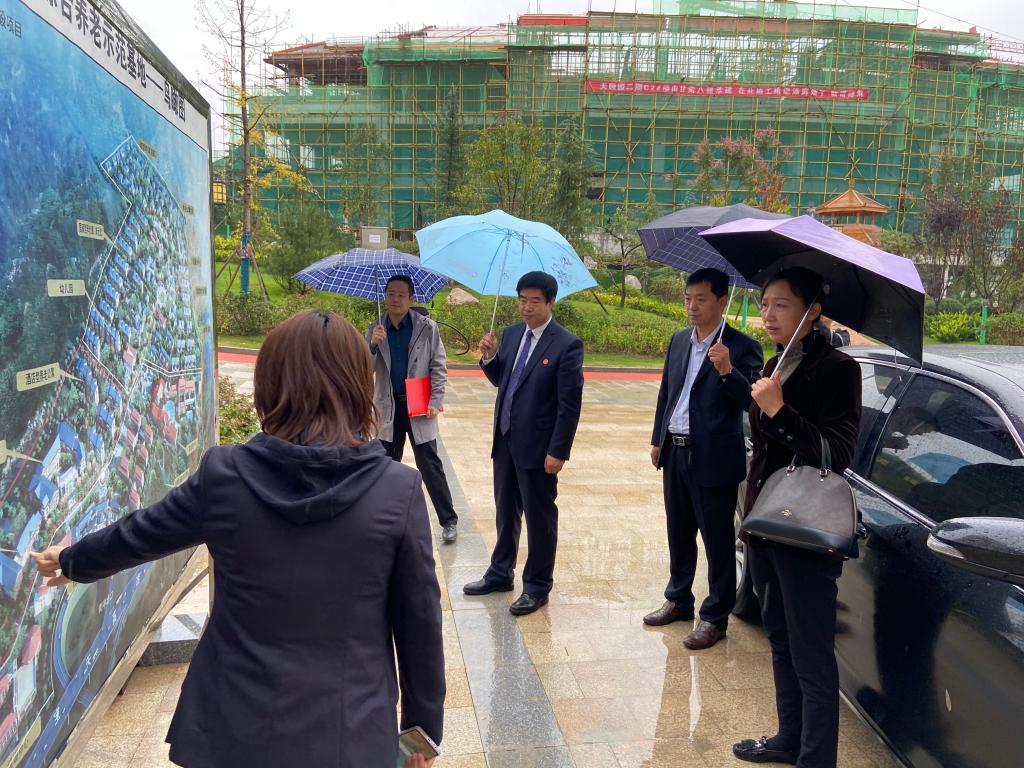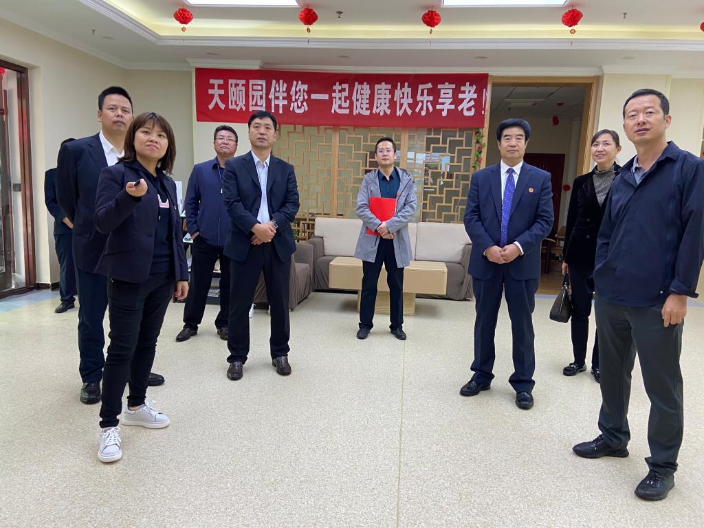 汪聚应一行在甘肃城乡发展投资集团基础设施开发有限公司党委书记、总经理樊畠利的引导先后参观了“天颐园康养居”的门诊、康复室、评估室、理发室、生活超市公共活动区、餐厅等设施。