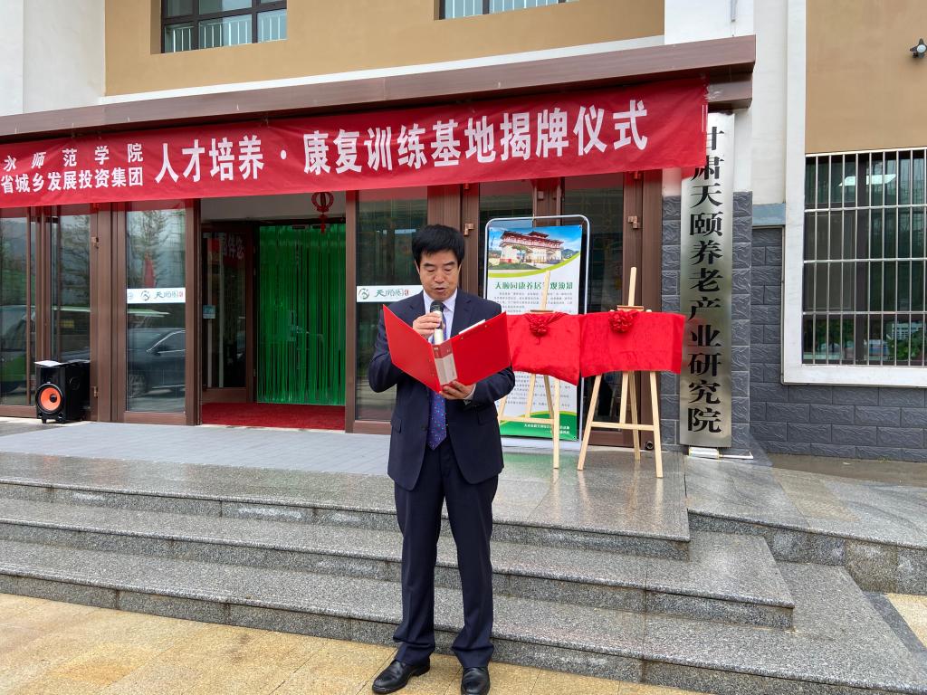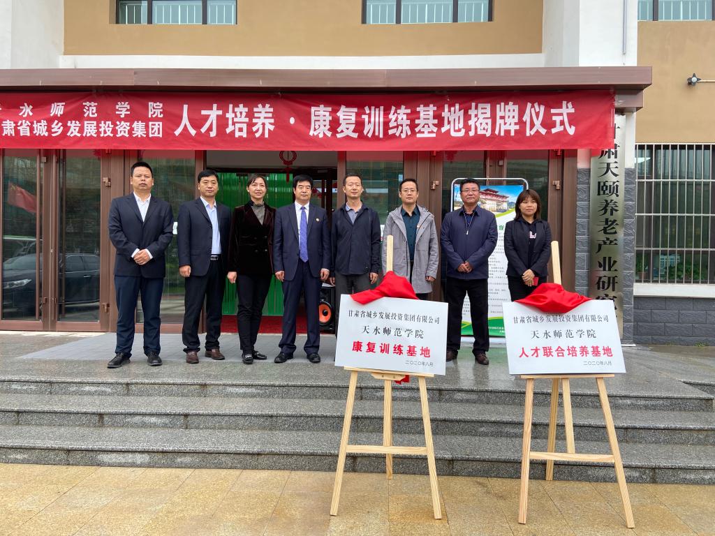 9月25日上午,天水师范公司党委常委、副董事长汪聚应一行前往天水麦积全国综合养老示范基地举行“伟德体育与甘肃省城乡发展投资集团人才培养·康复训练基地揭牌仪式”,国际交流合作处,甘肃省残疾人体育与运动康复研究院,伟德体育负责人陪同。