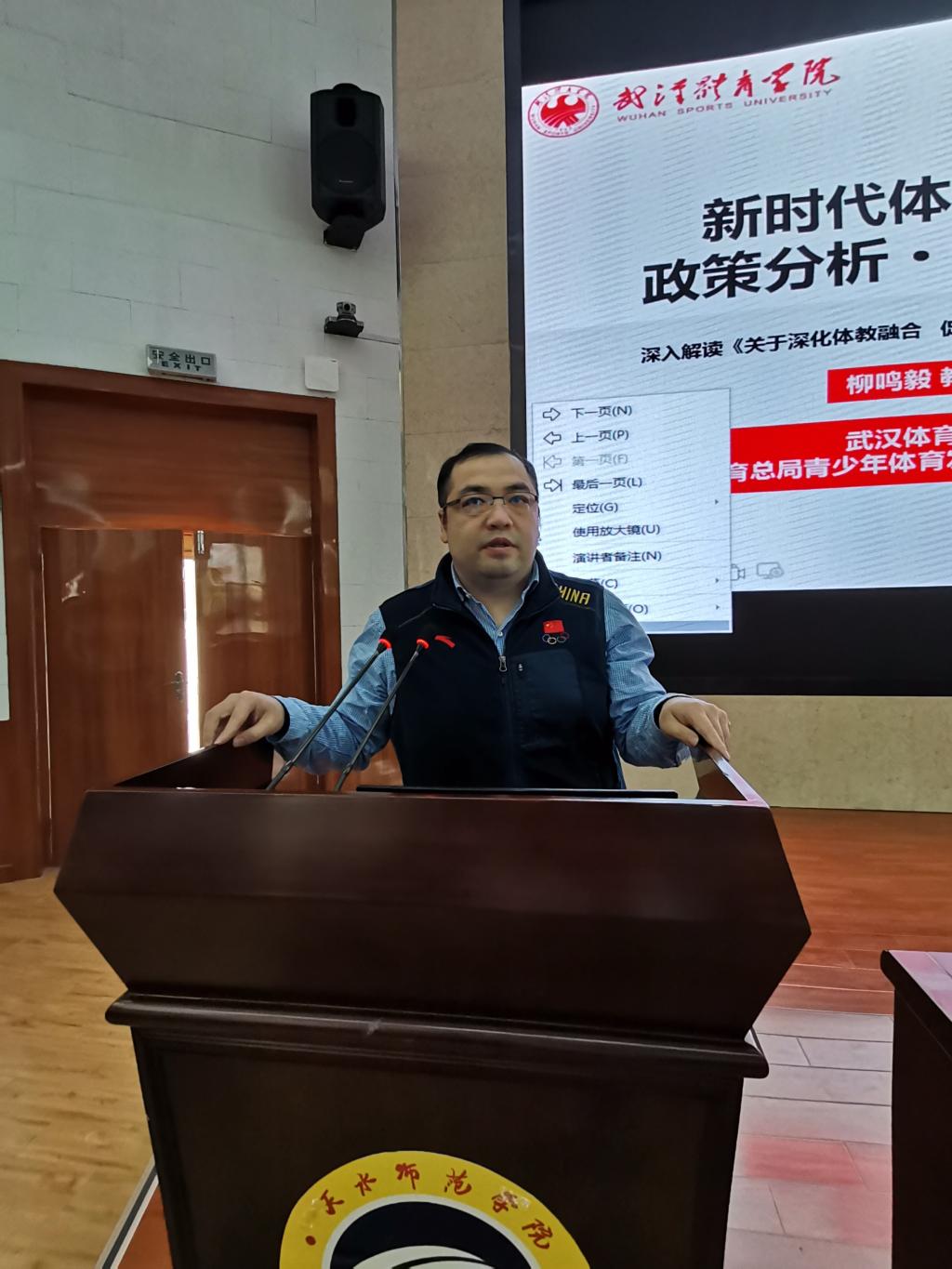 11月2日,在2号报告厅,公司成功邀请到武汉体育学院柳鸣毅教授作了《新时代体教融合政策分析·创新发展》的学术报告。