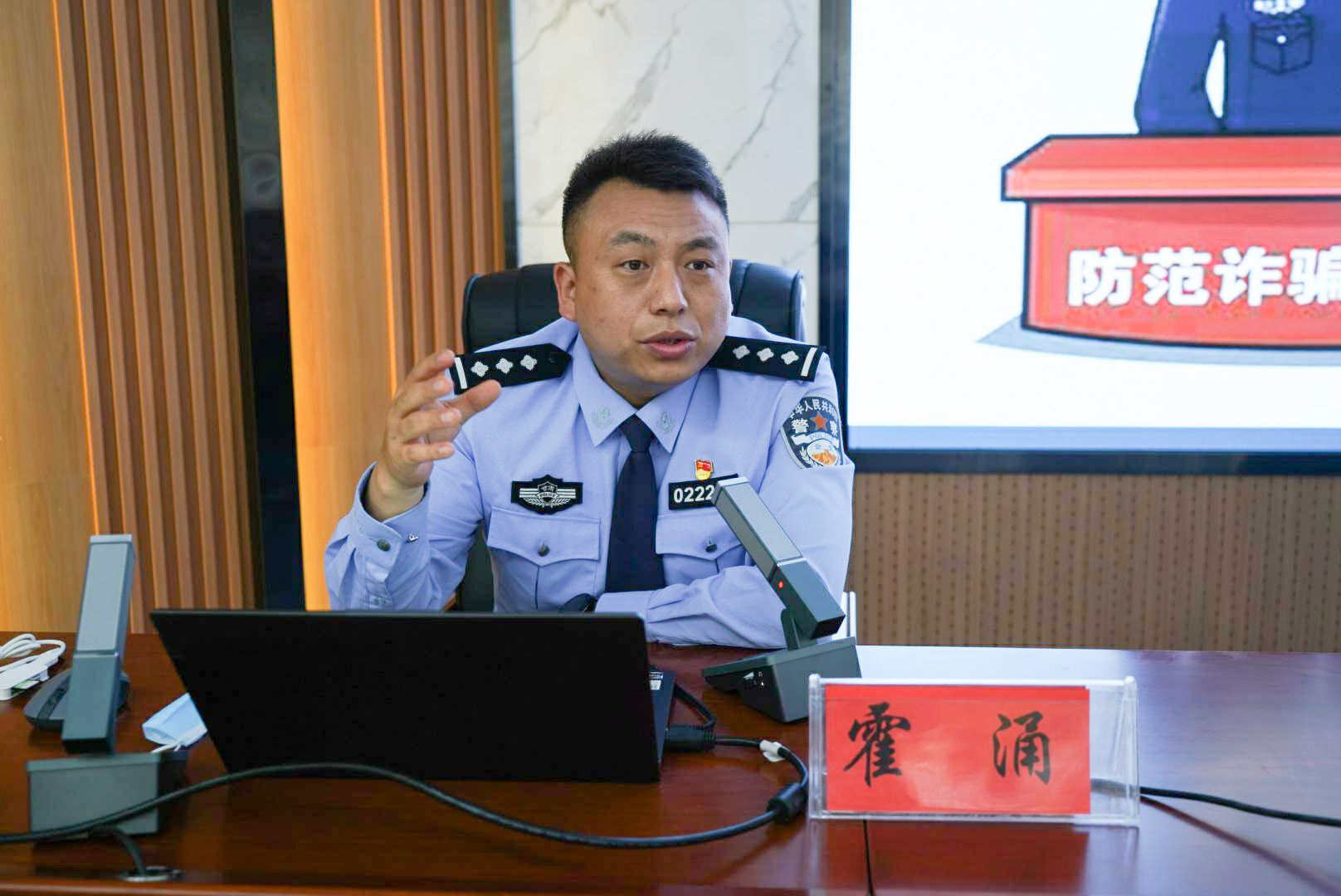 应伟德体育邀请,5月20日,天水市公安局秦州分局刑事侦察大队反诈中队霍涌中队长为该院员工作预防电信诈骗专题辅导报告。