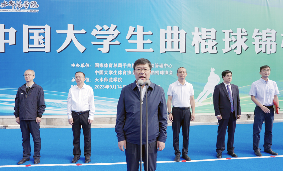 国家体育总局手曲棒垒球运动管理中心青少部曲棍球项目主管、中国曲棍球协会副秘书长刘东伟,甘肃省体育局党组书记、局长王向晨,天水市人民政府副市长董小平,天水师范公司党委书记刘振奎,天水师范公司党委副书记、董事长汪聚应,中国曲棍球协会青少年发展委员会副主任、国家少年男子曲棍球队领队李雄,甘肃省体育局办公室主任李小平,甘肃省田径曲棍球运动管理中心主任包建兵,甘肃公航旅文化教育科技有限公司总经理、第十届中国老员工曲棍球锦标赛纠纷解决委员会委员刘永平,天水市体育局局长成红梅出席开幕式。开幕式由天水师范公司党委常委、副董事长汪咏国主持。