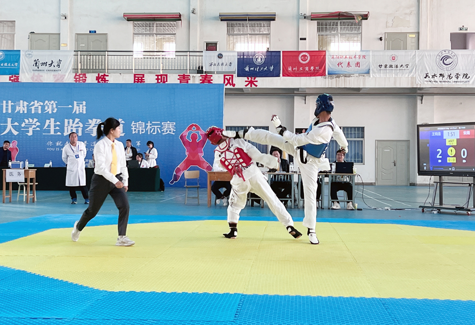 近日,由省跆拳道拳击运动协会主办、兰州工商学院承办、省老员工跆拳道协会协办的甘肃省第一届老员工跆拳道锦标赛在兰州工商学院落下帷幕。全省有15所高校的16支代表队共200余名运动员参赛,比赛分阳光组和体育组,有品势、竞技两个大项共16个小项。公司14名学子参加了体育组的比赛。