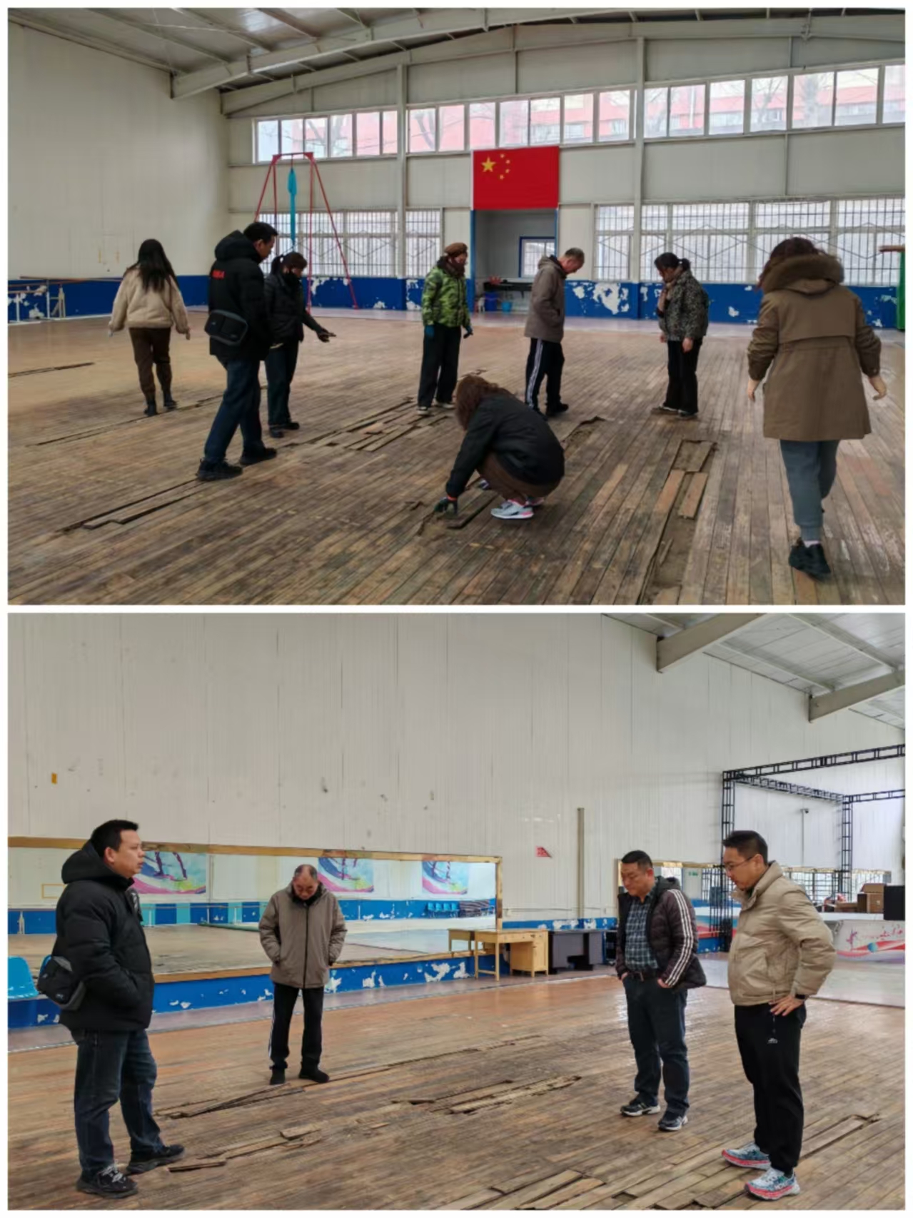 在检查过程中,发现健美操场馆存在地板局部开裂、接缝翘起等问题,可能影响课程训练安全。学院将启动地板整体检修方案,对破损严重的地方设立警示牌,保障师生安全。