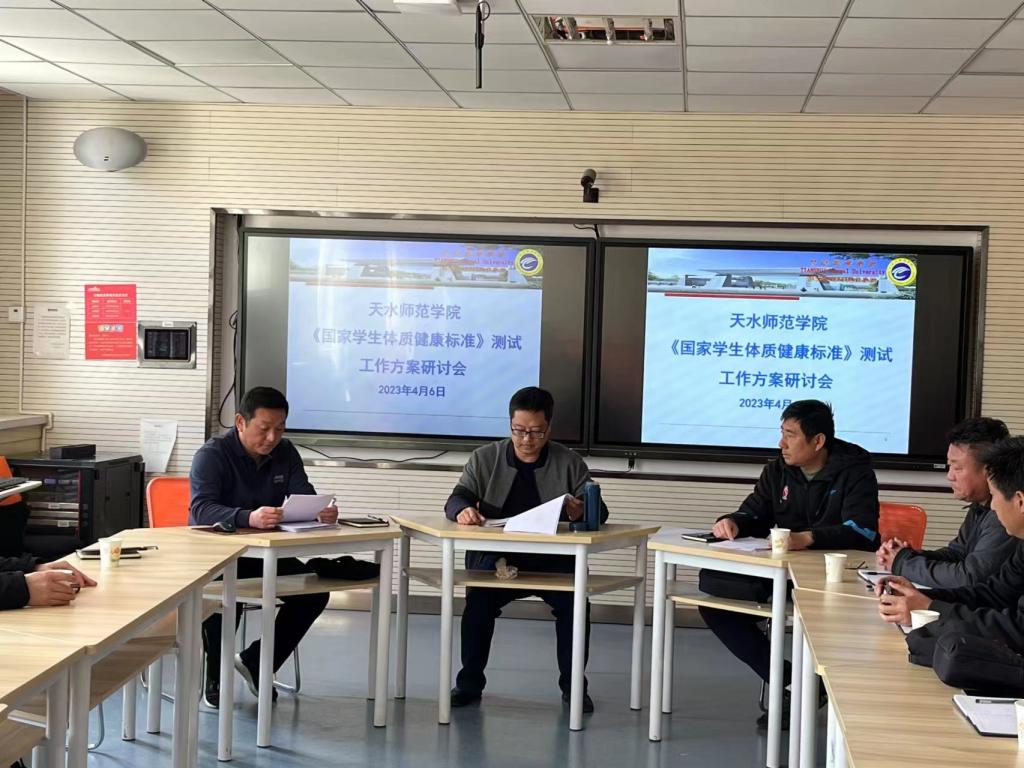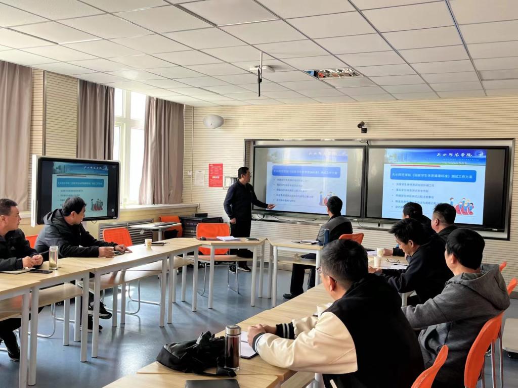 2023年4月6日下午,学院组织教师在2号教学楼304室召开学校《国家员工体质健康标准》测试工作方案研讨会。公司党总支副书记、系主任、公共体育教学部负责人和教工第一党支部党员参加研讨会。会议由公共体育教学部负责人主持。