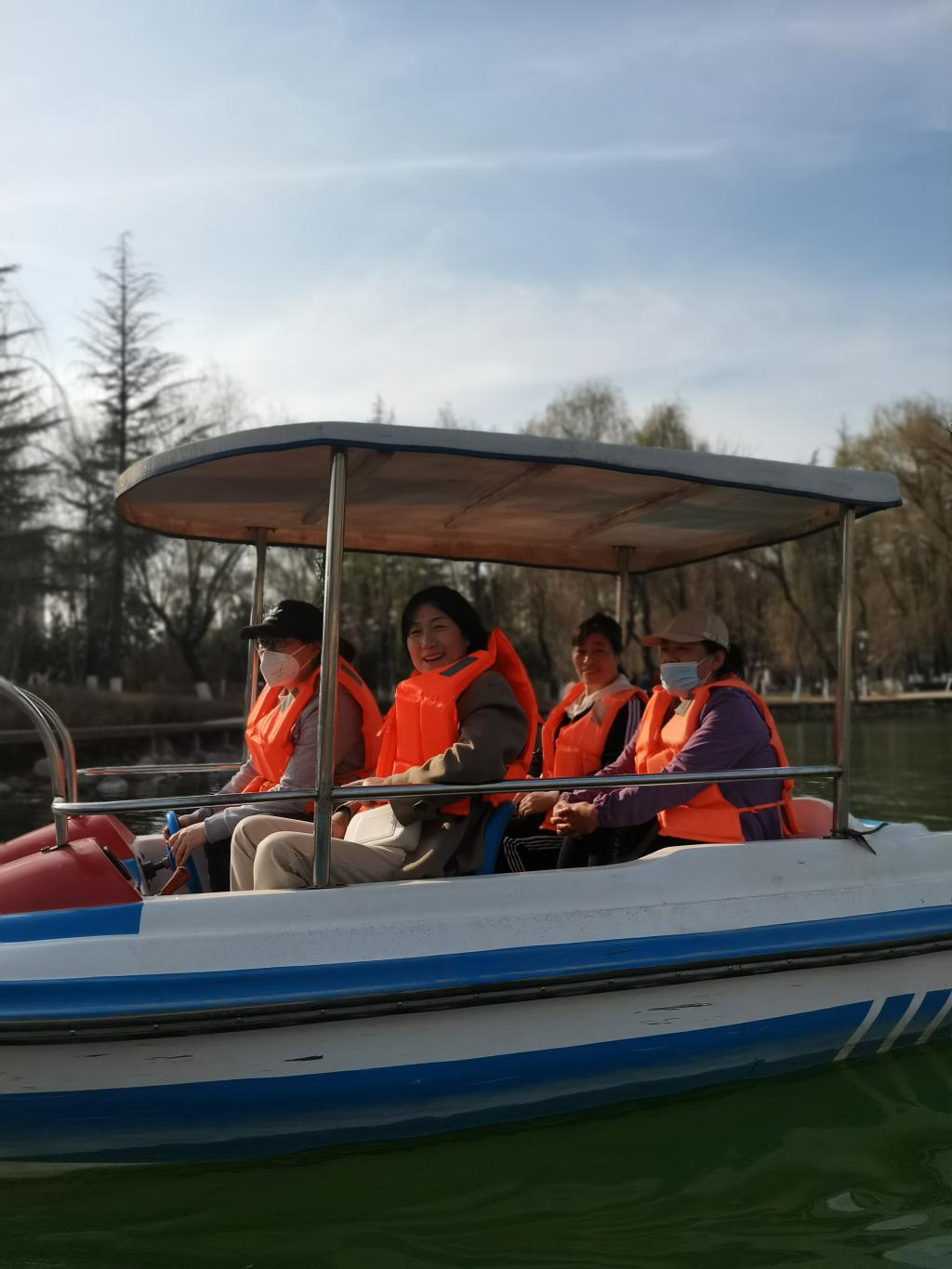 在公园里,组织大家乘坐了游船后,开展了一分钟跳绳、踢毽子以及玩扑克、下跳棋等活动。在各项趣味活动中,大家舒缓减压,放松身心。