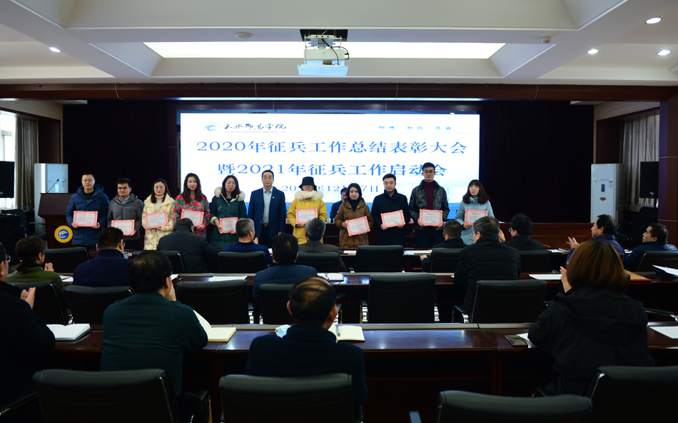 会上,学校武装部总结了2020年学校征兵工作,并对征兵工作成绩突出的单位和和个人进行了表彰。公司被授予“2020 年度征兵工作先进单位”荣誉称号,张海军同志被授予“2020 年度征兵工作先进个人”荣誉称号。