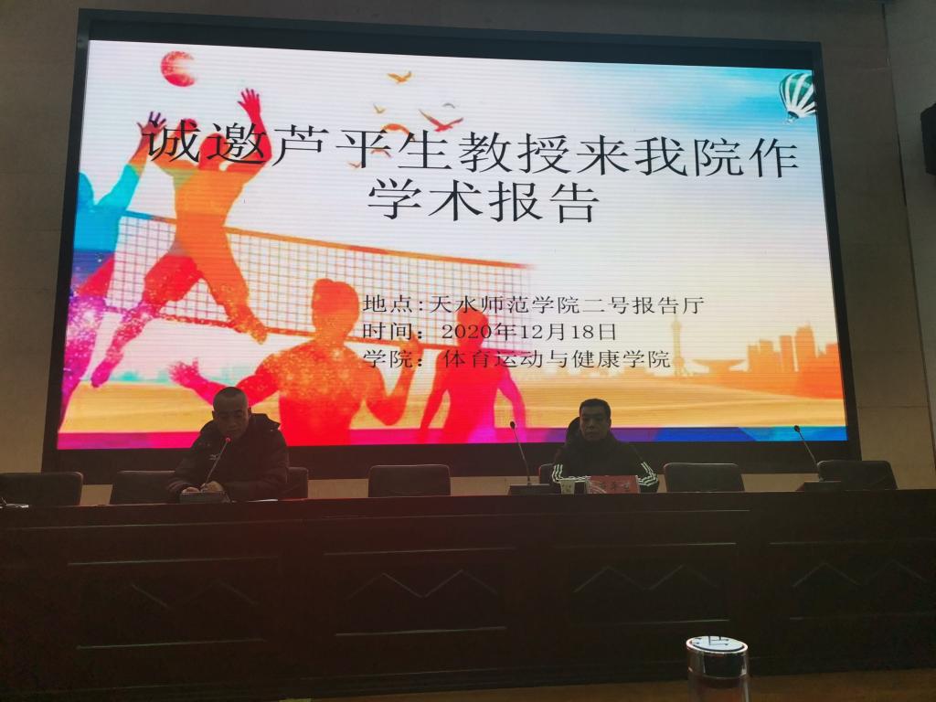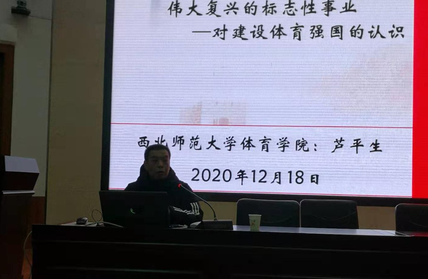 12月18日上午,西北师范大学芦平生教授应应伟德体育邀请,在学校二号报告厅作了题为《奋进新时代——让体育成为中华民族伟大复兴标志性事业》的学术报告。