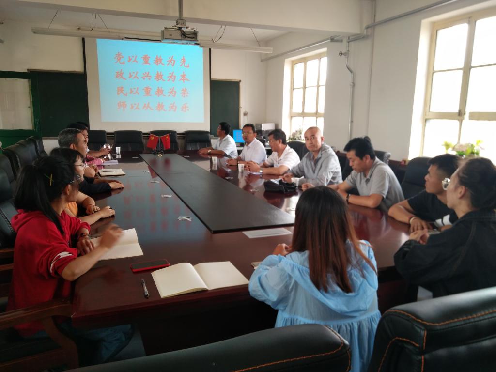 陇西文峰中学董事长赵廷瑞、副董事长何丽萍等学校领导组织实践教育安排见面会。赵董事长对公司教育硕士6名员工(包括思政4名研究生)的到来表示热烈欢迎,就为期一学期的教育实习提出了相关要求,期待实习研究生能收获满满,取得实效。